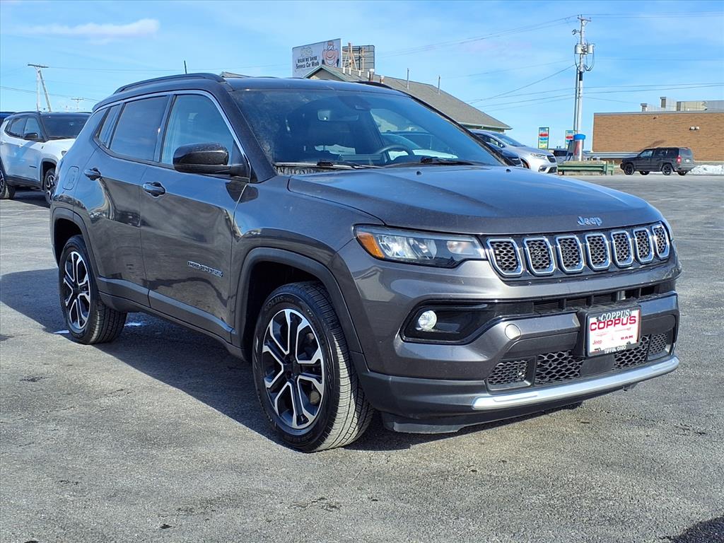 Recent Arrival! 2023 Granite Crystal Metallic Clearcoat Jeep Compass Limited 4WD 2.0L I4 DOHC 8-Speed Automatic This Jeep Compass has many features and is well equipped including, *Bluetooth Hands-Free, Power Package, Automatic temperature control, Heated front seats, Heated steering wheel, ParkView Rear Back-Up Camera, Radio: Uconnect 5 w/10.1Display, Telescoping steering wheel. CARFAX One-Owner. Clean CARFAX. 24/32 City/Highway MPG Thank you for taking the time to look at this 2023 Jeep Compass. Coppus Motors is a three-generation, family owned operation with over 99 years in the automotive industry. All our pre-owned vehicles are CarFax checked. Ask for your copy. We are upfront with all our pricing and INCLUDE tax, title, and doc fees when you receive your monthly payment quote. No hidden fees! We offer FREE loaner cars & shuttle service with pick-up & delivery service available. Additionally, all our valued customers receive a FREE car wash with all paid service visits.*